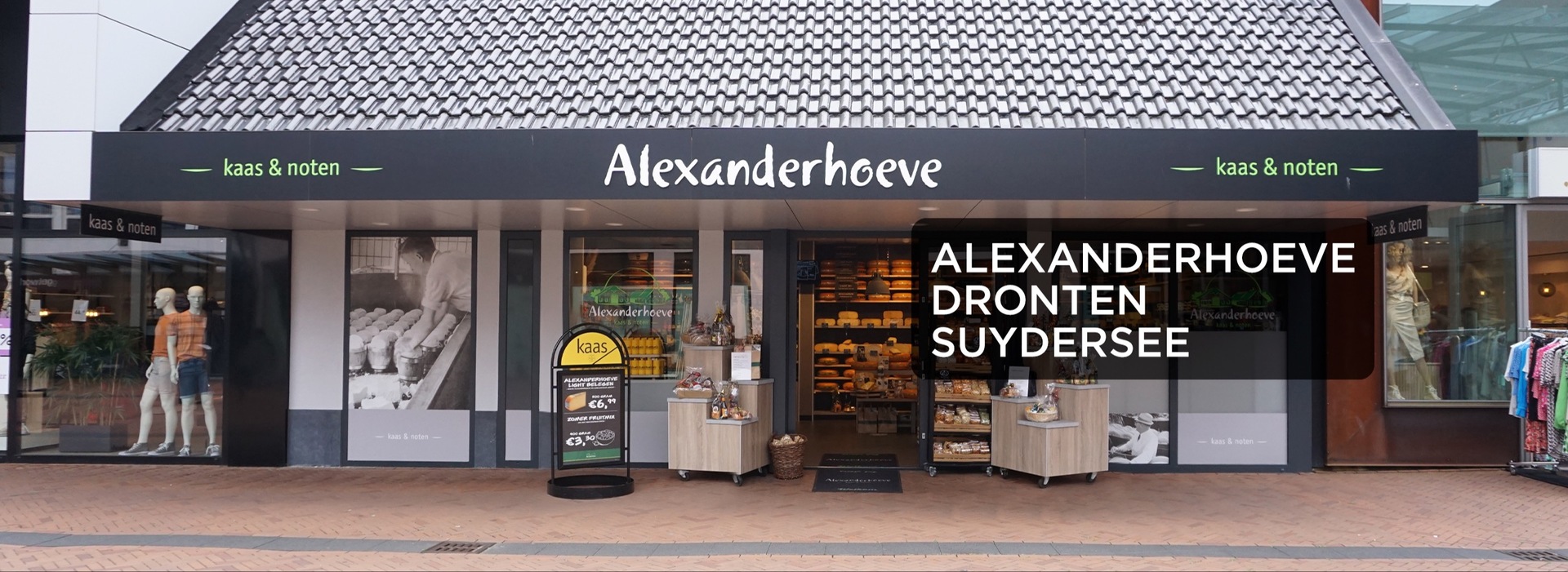 Welkom bij Alexanderhoeve Dronten Suydersee, de winkel van André de Lang. Voor heerlijke Hollandse en buitenlandse kaas ben je bij ons aan het goede adres. Daarnaast hebben wij heerlijke wijnen, vers gebrande noten, chocolade en ander lekkers in ons assortiment. En ook voor de mooiste cadeaus, kerstpakketten, kaasplateaus en goed kaasadvies kun je bij ons terecht.